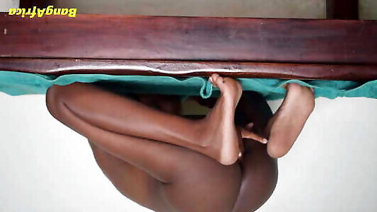 African Girl Is Handcuffed by the Feet and Fucked in the Pussy Insanely with Her Body Covered in Oil and Riding Hard on the Tatt