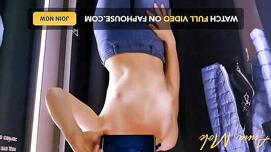 A girl with a perfect figure in jeans, shows her small beautiful breasts