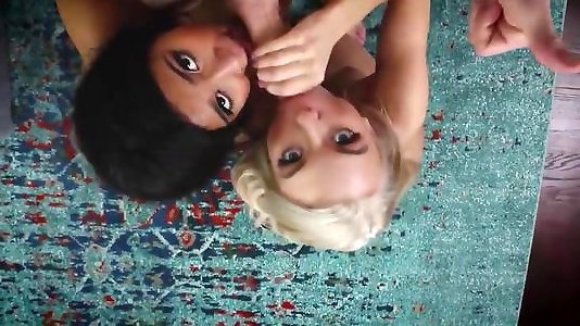 Asian milf fellating and ge...