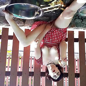 Retro the maid is peeling the potatoes for dinner. Antique performance. Vintage maid have no underpants. Onanism Cam1