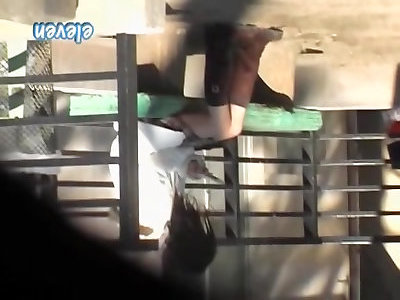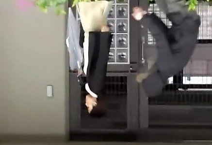 Japanese businesswoman loses a miniskirt during whitening girls sharking.