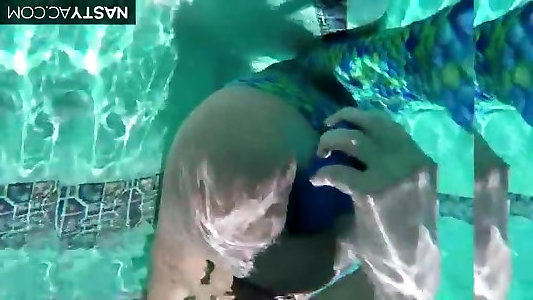 She is testing her new butt plug in the pool