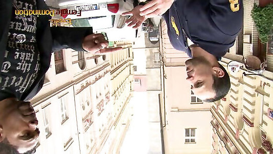 Big-chested dominatrices belt dick boinking subjugated boyfriend in gang scene