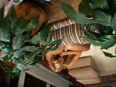 Ash-blonde cutie in dark-hued fishnets lowers her brown-eye onto steamy man&039;s trunk