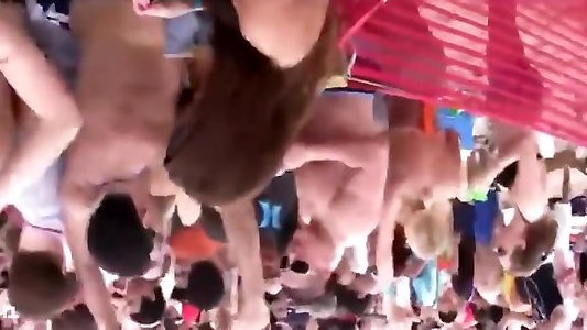 Spectacular nude platinum-blonde drunk kiss, twerk, in a beach party