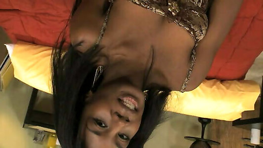 Young black floozie takes large pillar in her taut vulva