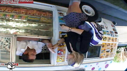 Blondie teenager with diminutive milk cans wears a skirt and gets picked up