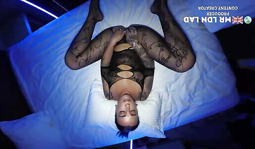 Hot pixie in mesh gets all slippery and lubed up then gets a deep bum boning