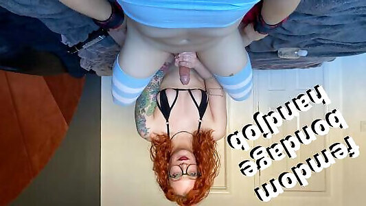 Nerdy Redhead Milking Submissive Cock While Riding his Face