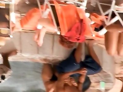 Stellar blonde damsel in crimson underpants luvs to rail thick man sausage of this lucky man