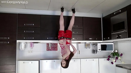 Female In Red Satin Blouse & Footwear Gets Plumbed
