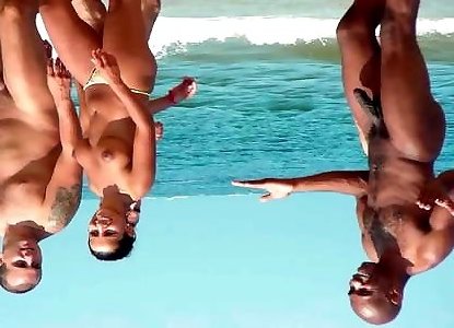 Dark-haired with outstanding kinks tongues jizz explosion after pounding two dudes