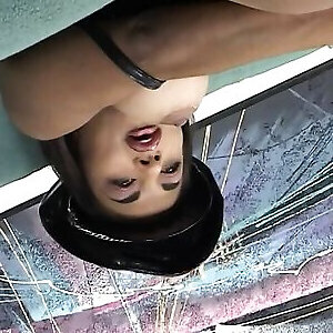 Fabulous platinum-blonde with hefty funbags flashes her muff