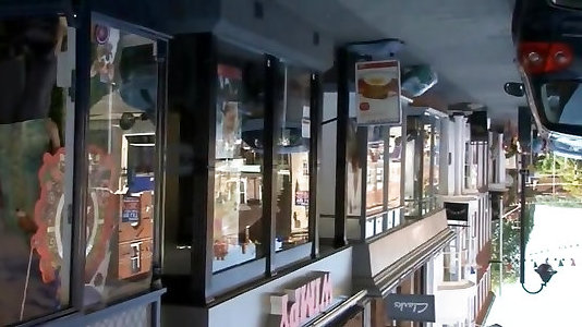 College Girl Dickflash, Upskirt, CFNM Demonstrating at the Bus Stop