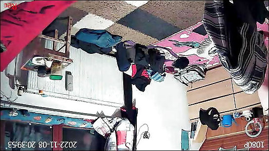 Cool Latina in dark-hued mesh bottoms getting bra-less for you
