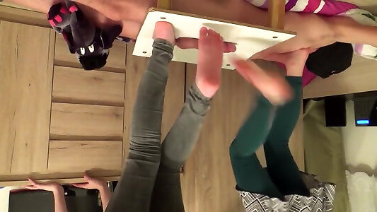 Two Sexy MILF&039;s in Black Lingerie Ball Busting a Slave