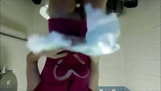 Hot Tall Blonde with a Lace Bra and a Miniskirt Changes Panties in the Bathroom by Flashing Her Pussy and Naked Ass