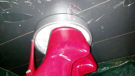 Nymph L kick mom in kihchen with crimson shoes.