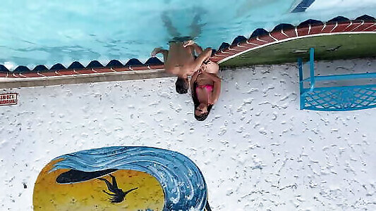 THE NEIGHBOR LEAVES HER HUSBAND AT HOME TO FUCK THE FIRST SEE IN THE POOL