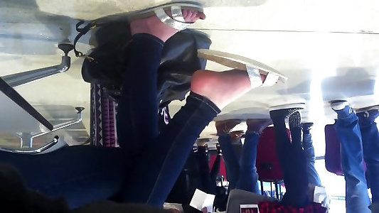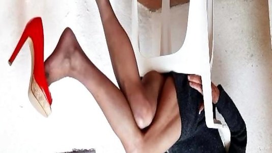 Peeptoe Dangling in Red Stockings & Black Leggings