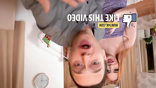 Dashing hot brunette in glasses and cute outfit gets nailed by a young stepbrother