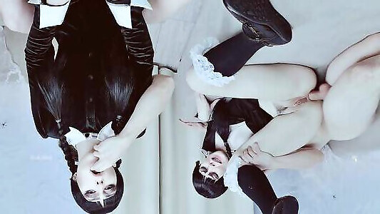 Wedging Her Crevasse on 2 Big Fuck Sticks