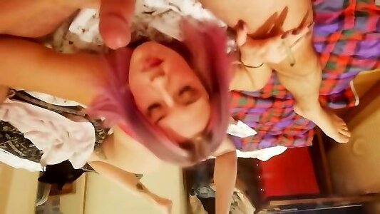 Rosy haired girlfriend Smokes Weed, gets high and Deepthroat my Beefstick