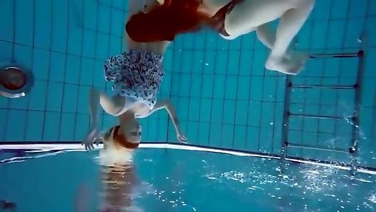 Dos sirenas rusas,haciendo travesuras en la piscina.