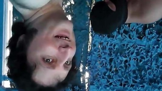Handsome pregnant dwarf jerking her melons befor the real fountain