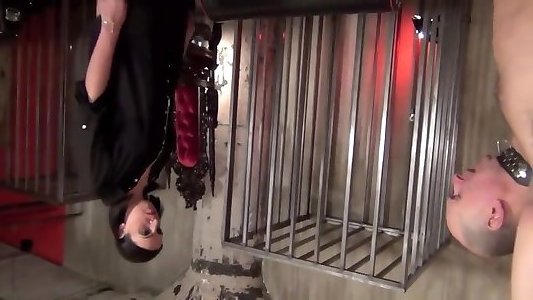Steaming Brief Haired Dominatrix lets Slave Eat Cooch and Bum FaceSlapping