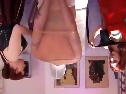 Felix the successful gimp is predominated by 2 cool broads on the floor