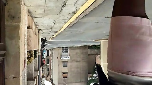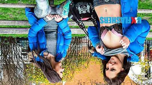 Teen brunette girl flashing her tits on the street and gets caught Onlyfans trailer