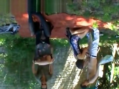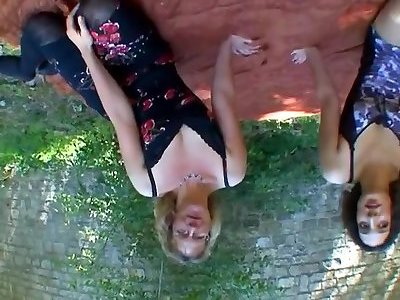 Françoise, une light-haired mûre à lunettes sest pointée avec sa copine beurette pour se faire partouzer en plein air