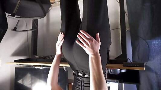 doggy slyle stretcging witn panty