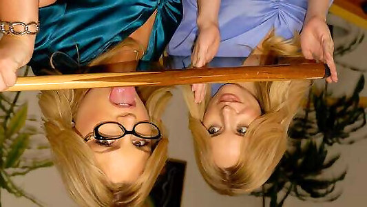Dominatrix And Handmaiden: Ash-blonde Girl-girl Slave Jerks In