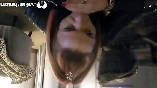Wife gives handjobs with huge cumshots in front of neighbor&039;s window, showing off amazing tits, long legs and feet