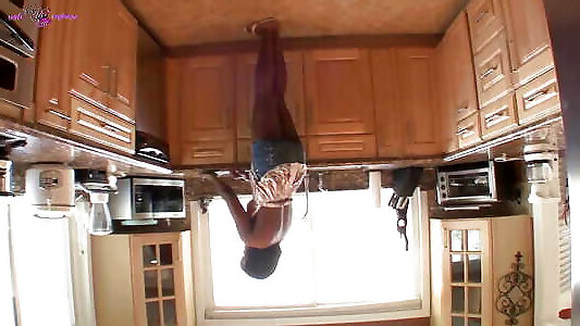 Mature black-haired enjoys young multiple orgasms tied forced in gash