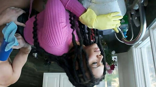 I fucked my horny stepmother in the kitchen who was walking around in tight clothes, I didn&039;t hold back and I put my cock in her