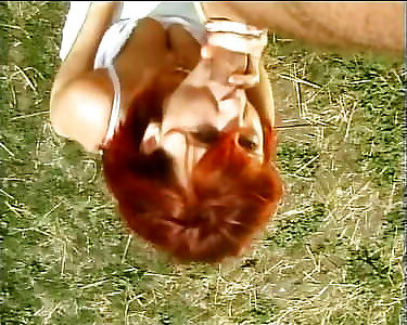 Barely Legal year senior redhead blowing manhood on an open sphere