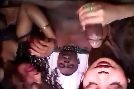 Pale stud gives the 2 giant honies his big jizm-gun
