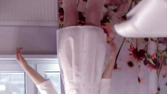 Red-hot Cougar Housewife Licks You Clean With Spandex Cleaning Glove On