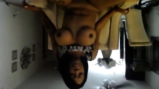 Distinctive black honey Lacey Duvalle juggling on a black beef whistle outside
