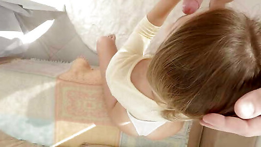 Lusty cockslut with fine bra-stuffers gives grubby wet head in kitchen