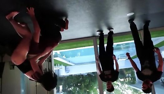 Muscle Mind-blowing Woman vs Man- teen cruise ship Standing Grappling Pinches