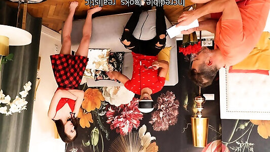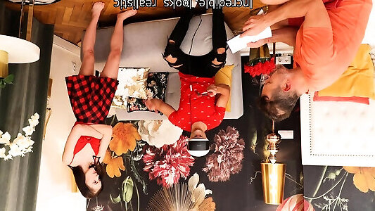 Lassie nailed by mature man next to her BF in VR headset