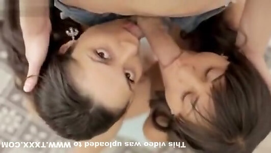 Hooking up with 2 super hot amateurs Emma Evins and Alexa Gold sharing cock blowjobs and riding hard