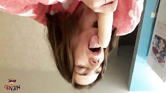 SUPER HOT BRUNETTE TEEN RIDING PILLOW AND HUGE DILDO