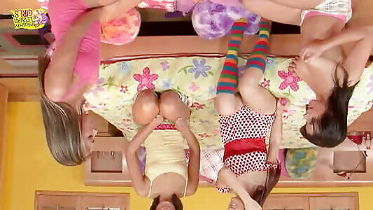 Super Hot and Horny College Lesbian Girls come together for intense orgasms in a lesbian threesome sex party
