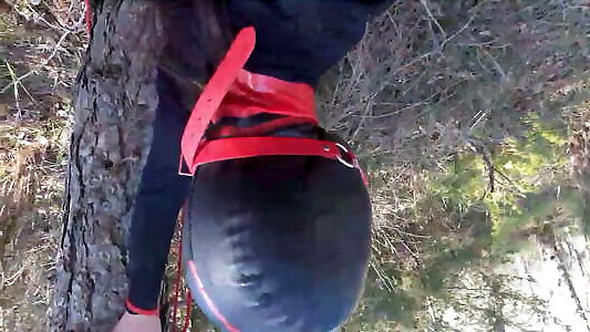 Tied up to a madeline fenton, outdoors in fabulous clothes, ball ball-gagged