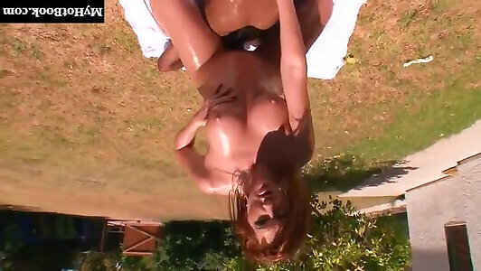 My sporty and big-chested step-mother oiling my tranny gaping asshole